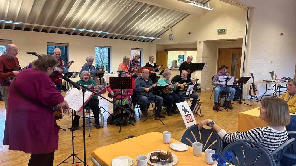Then we had a fantastic ukulele group to entertain us called Dukes Ukes and entertain us they did! A foot taping, chair jiggling, sing along with a poem to boot.