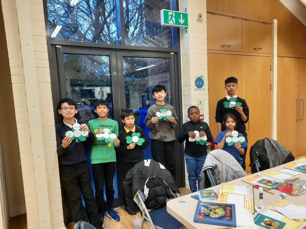After a short snack time, the children got to doing some crafting, where they made clovers with messages about each of the embodiments of God, the Father, Son and Holy Spirit, which helped them understand the Trinity to a further extent, and St Patrick whose feast we celebrate on March 17.